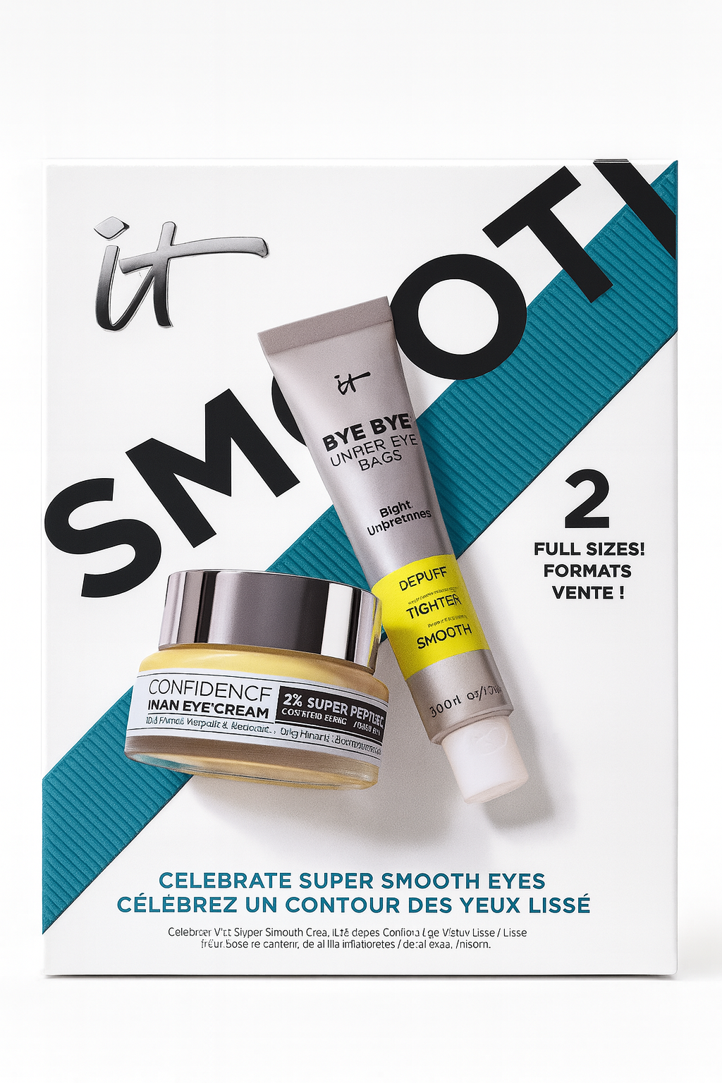 The It’s Smooth Bye Bye Under Eye Bags Cream instantly depuffs, tightens, and hydrates delicate under-eye skin for a refreshed, well-rested look. Enriched with caffeine, peptides, and hyaluronic acid, this formula cools and smooths fine lines, leaving your eyes visibly firmer and awake